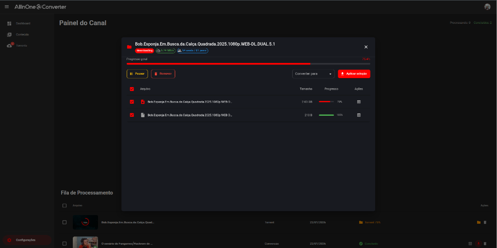 Sistema open source de conversão de mídia com arquitetura de microserviços, suporte a torrents, downloads de URLs e streaming HLS.